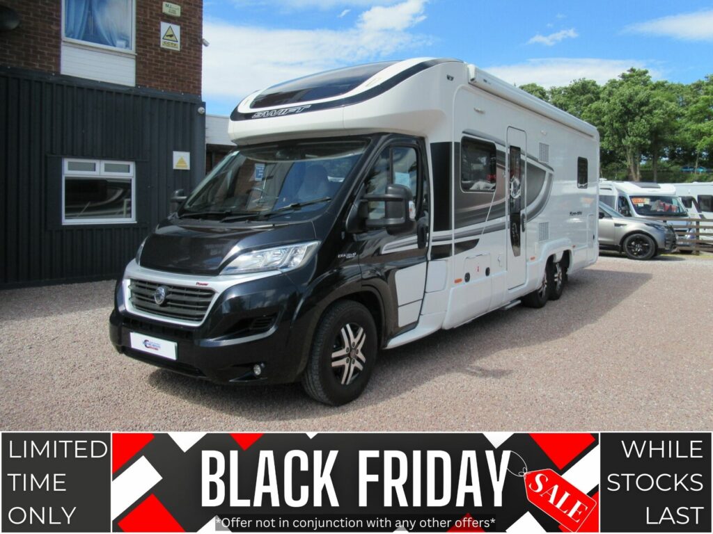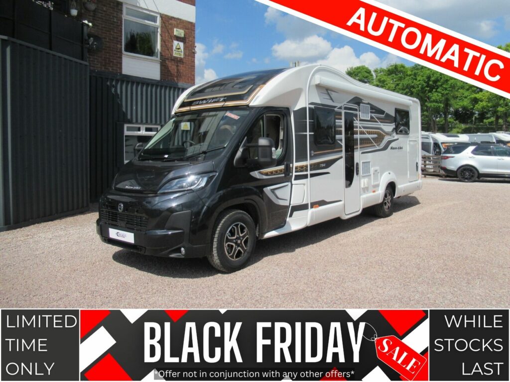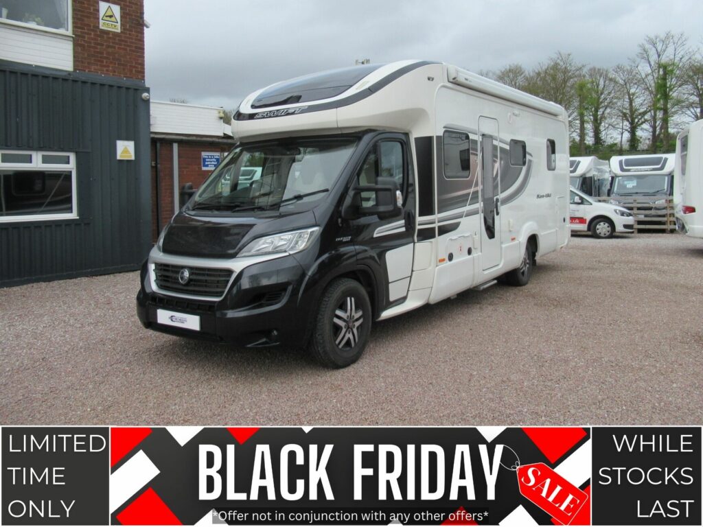 This Swift motorhome provides 4 berth accommodation, with 4 belted seats (including drivers). With accommodation provided through a front lounge conversion and an island bed. While the kitchen benefits from a dual fuel hob, combined oven & grill, microwave, 3-way fridge/freezer and sink. The bathroom has a separate shower washroom with shower, sink, vanity, and cassette toilet.