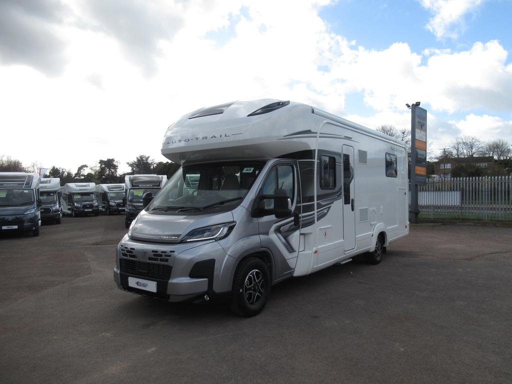 This Auto-Trail motorhome provides 4+2 berth accommodation, with 4 belted seats (including drivers). With accommodation provided through a high level island bed, an over cab bed, and optional front lounge conversion . While the kitchen benefits from a dual-fuel hob, separate oven & grill, microwave, 3-way fridge/freezer and sink. The bathroom has a separate shower washroom with shower, sink, vanity, and cassette toilet.