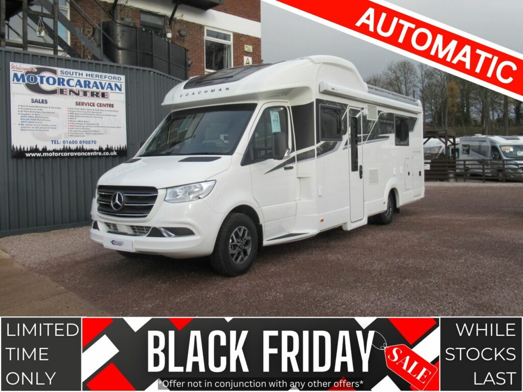 This Coachman motorhome provides 4 berth accommodation, with 4 belted seats (including drivers). With accommodation provided through an island bed and electric drop-down bed over the front lounge. While the kitchen benefits from a 2-burner gas hob, combined oven & grill, microwave, 3-way fridge/freezer and sink. Also, the bathroom has a separate shower washroom with shower, sink, vanity, and cassette toilet.