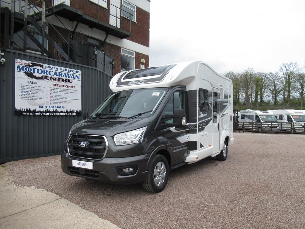 This Swift motorhome provides 4 berth accommodation, with 2 belted seats (including drivers). With accommodation provided through an electric drop-down bed over a front lounge conversion. While the kitchen benefits from a dual fuel hob, combined oven & grill, 3-way fridge/freezer and sink. The bathroom has a separate shower washroom with shower, sink, vanity, and cassette toilet.