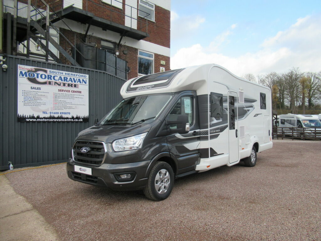 This Swift motorhome provides 4 berth accommodation, with 4 belted seats (including drivers). With accommodation provided through a front lounge conversion and twin single beds. While the kitchen benefits from a dual fuel hob, combined oven & grill, 3-way fridge/freezer and sink. The bathroom has a separate shower washroom with shower, sink, vanity, and cassette toilet.