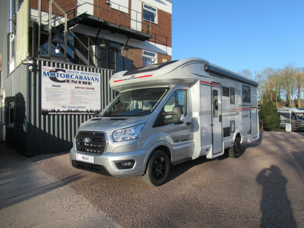 This Roller Team motorhome provides 4 berth accommodation, with 4 belted seats (including drivers). With accommodation provided through an electric drop down bed over the front lounge and an island bed. While the kitchen benefits from a 3-burner gas hob, combined oven & grill, 3-way fridge/freezer and sink. The bathroom has a separate shower washroom with shower, sink, vanity, and cassette toilet.